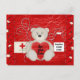 Comece logo com o ursinho de primeiros socorros e o cartão postal do xarope de tosse. Adicione facilmente a sua própria mensagem no verso