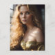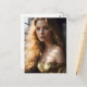 Postal Loira num Cartão Dourado de Vestido