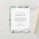 Este cartão de obrigado verde e dourado é perfeito para o seu elegante casamento da floresta boho. Com uma paisagem rústica esmeralda verde-aquática pontilhada com árvores, pássaros, e destaques da folha de ouro. É só o que você está procurando para completar seu único casamento de destino moderno.