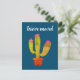 Mudança de endereço da planta de cacto vintage que movemos do cartão-postal. Cartões flexíveis para novas casas ou relocalizações. Cartão divertido para casa, empresa, etc. Cacto verde com flores cor-de-rosa a desenhar.