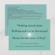Portanto, não existe nada de irreal no cartão ACIM. Um curso em milagres. Na frente da carta está uma citação espiritual inspiradora do livro A Course In Miracle sobre um fundo temático verde. "Nada de irreal não existe nada de real pode ser ameaçado Aqui está a paz de Deus." (A introdução, um curso em milagres) Depois de você ter personalizado este cartão com o nome de seu amigo ou membro da família e seu próprio nome, envie o cartão diretamente. Projetado por um estudante de ACIM como um lembrete útil!