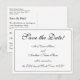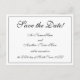 Este design de cartão postal com estilo nostálgico e tradicional guardar a data apresenta a mensagem "Guardar a Data!" na frente, juntamente com nomes personalizados, uma data e detalhes do evento. Cartões postais como este poderiam ser usados para dar uma palestra a potenciais convidados de uma próxima celebração de casamento ou de algum outro evento.