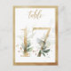 Lindo cartão de número de mesa com um motivo botânico - uma ilustração em aquarela de folhagem verde e números com efeito dourado. Mesa 17. Por favor, verifique todos os números disponíveis