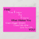 O Design do Illustrator April McCallum apresenta texto inspiracional em preto e branco em um cartão-postal rosa quente. Texto Lê: "Encontre Sua Paixão, Alegria, Propósito... O Que Faz Você Sonhar Maiores Sonhos, Vir Totalmente Vivo, Amar Sua Vida... VOCÊ!"