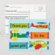 Este cartão é uns GRANDES primeiros cartões de agradecimentos. A parte traseira é fácil para que sua criança complete, e pode ser personalizada. A parte dianteira tem aviões coloridos, alegres, assim que serão orgulhosos enviar estes aos amigos e à família.