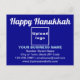 Feliz Hanukkah! Desejando alegria, paz e abençoando este festival de luzes. Feriado para comemorar este mês de dezembro e anunciar também o seu negócio. Cartão postal que você pode personalizar para colocar sua marca comercial e com saudação de Hanukkah. Personalize-o e use-o para cumprimentar seus clientes ou clientes este Chanucá e como material de marketing para anunciar sua empresa ou promover seu nome de marca. Cartão postal personalizável que você pode usar para criar reconhecimento de nome de marca. As cores design são textos claros, azuis e brancos sobre fundo azul. Para personalizar este cartão postal, carregue o logotipo da sua empresa, digite seu nome, endereço, número de telefone, e-mail e site ou a página de mídia social da sua empresa. Verifique a aparência após carregar o logotipo e digitar textos. Se a aparência lhe agrada, você pode colocar seu pedido agora. Se você precisar redimensionar e mover o logotipo e os textos para o ajustado neste cartão postal, troque a ferramenta design. Você também pode alterar a cor do plano de fundo, a cor da fonte e o estilo da fonte na ferramenta design. Você também pode adicionar imagens e textos no verso deste cartão postal na ferramenta design. Feliz Hanukkah! Desejando mais vendas neste feriado.