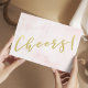 NewParkLane - Cartão postal elegante, com o desejo 'Cheers!' em tipografia elegante de pseudo-folha de ouro, contra um fundo em aquarela cor de rosa.