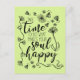 Este cartão-postal inspirador 'Take Time para fazer o que torna sua Alma Feliz' pode ser comprado como mostrado aqui com um fundo de verde limão, ou a cor pode ser alterada para uma cor de sua escolha. Este é um cartão de excelente para enviar para a família ou amigos, ou parecerá excelente exibido em sua casa ou escritório.
