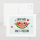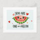 Celebrar alguém especial com este encantador cartão "Você é um em um Melão"! Apresentando uma fatia encantadora de melancia com um grande sorriso e rodeada por corações bonitos, esta carta é perfeita para expressar sua apreciação, amor ou admiração. Ideal para aniversários, graças a você nota, ou apenas para que alguém saiba que eles são realmente únicos. Adicione seu toque pessoal para torná-lo mais doce!