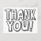 Perfeito para crianças, este cartão de agradecimento ilustrado com letras maiúsculas desenhadas à mão em preto e branco simples permite que qualquer pessoa seja o artista e pinte as letras e o fundo para tornar a arte de escrever um bilhete de agradecimento um pouco mais divertida. No verso, um endereço de devolução personalizado torna ainda mais fácil escrever e enviar uma nota de agradecimento, além do porte econômico de um cartão postal.
