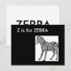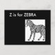 Postal "Z" é para o cartão de identidade zebra alfabética