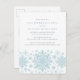 Flocos de neve de cor azul muito elegantes criam uma bonito borda ao longo do final deste convite de aniversário para adultos. A design moderna e minimalista tem uma sensação aberta e arejada. A estética contemporânea apelará a pessoas de todas as idades.
