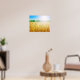Este poster apresenta uma impressão fotográfica de um belo campo de trigo com raios solares. Personalizar este item ou comprar como está. imagem de estoque www.freepik.com