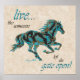 Aproxime Sua Casa Com Este Poster De Cavalo. Ele apresenta uma Silhueta Cavalo Galopante em Turquesa, Preto e Dourado e as palavras inspiradoras..."VIVER COMO ALGUÉM DEIXOU A PORTA ABERTA"! Este é um Design de Arte Gráfica Original criado pelo Artista Kerry Miller.