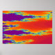 Este poster bonito apresenta um fractal que se parece com um nascer do sol. À esquerda há muitos padrões roxos que se parecem com nuvens de escuridão e à direita deles estão áreas de sol laranja da manhã.