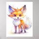 Um poster muito bonito com uma ilustração de uma raposa bebê sorridente.