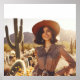A gorgeous brunette cowgirl, western wear, standing in the dessert with plants all around.