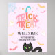 Bem-vindos aos seus hóspedes à última festa do Dia das Bruxas Rosa com o nosso Poster de Trick ou Tratar. Com uma paleta de cor pastel e um gato preto giro, este Poster de boas-vindas é perfeito para dar o tom para um evento divertido e festivo. O texto personalizável permite que você adicione seus próprios detalhes, fazer este Poster como uma maneira charmosa de começar suas comemorações de Halloween.