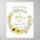 Grande sinal de boas-vindas de girassol perfeito para estabelecer o clima para uma alegre comemoração de 100 anos. Faça o pedido como um sinal impresso pronto ou faça-o como download e impressão sozinho. Convites, inserções, sinais, jogos e decorações correspondentes: https://www.zazzle.com/collections/happy_sunflowers_daisies-119394620935870358