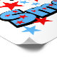 Texto vermelho e azul com 100 estrelas design em 100 dias T-shirts, canecas, botões, bolsas, cartões, autocolantes, ímanes, chaveiros e outros 100 dias de roupa e presentes escolares.