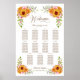Este gráfico de assentos florais de girassol e rosa ajudará seus hóspedes a encontrar a mesa deles. É adequado para um casamento com 11 mesas e até 110 convidados.