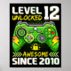 Poster 12 Birthday Gift Level 12 Desbloqueado Incrível 20