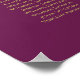 Esta tabela de 12 mesas de assentos é simples e elegante. Inclui atribuições de mesa para 120 convidados com 10 lugares por mesa. O design apresenta texto dourado sobre fundo magenta ou roxo do chassis com um título de caligrafia de script lacy. Os cantos são decorados com uma pasta falso e friável com coalhada e espiral. Na moda, chic e sofisticada maneira de ajudar seus convidados a encontrar seus assentos na sua recepção.