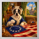 Luna, a Boston Terrier, está se divertindo com cosplay na Guerra Revolucionária Americana: Betsy Ross. Elizabeth Griscom Ross foi uma estofadora americana que foi creditada por seus parentes em 1870 por ter projetado e feito a primeira bandeira dos EUA,