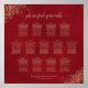 Este lindo gráfico de 13 mesas de assentos de casamento inclui atribuições de mesa para 130 convidados com 10 assentos por mesa. O design apresenta texto dourado em um fundo vermelho-escuro marmoreado com um título de caligrafia alfanumérica. Os cantos são decorados com um filigre de folha de alumínio falso, de ouro friável, com caracóis e espirais, fazer simples e elegante. Na moda, chic, tradicional e sofisticada maneira de ajudar seus convidados a encontrar seus assentos na sua recepção.