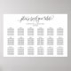Menos é mais, este simples gráfico de assentos de casamento irá expressar diretamente sua personalidade e dar aos seus hóspedes informações claras. Faça uma grande primeira impressão com este sinal de recepção horizontal preto e branco minimalista, perfeito para um casamento elegante e clássico. Você pode adicionar a cor de fundo. Basta clicar no link personalizar mais, mostrado na área de personalização de texto à direita, e escolher seu fundo de cor personalizado. Esta poster mostra a organização dos convidados sentados nas mesas e inclui espaço suficiente para cerca de 150 convidados. Deixe espaço para mais (ou menos) convidados clicando no botão "personalizar" e diminuindo ou aumentando o tamanho da fonte.
