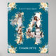 Crie um décimo quarto aniversário e seis fotos colagem num grande número de catorze. Decorado com lindas e adoráveis aquarelas, flores amarelas e azuis e rosas com folhagem verde. Presente perfeito para 14 de aniversário. Colagem de fotos número 14 personalizada para um produto exclusivo e muito especial.