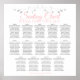 Torne sua recepção de casamento bonita com este assento. Projetado como parte do nosso Suite Elegante de Casamentos Rosa e Cinzas, ele apresenta um simples mas elegante design com texto cor-de-rosa e Cinza em um fundo branco com uma borda floral de folha falsa prateada.Este gráfico mostra as atribuições de mesa para que seus convidados tenham facilidade em encontrar a mesa certa.