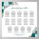 Este assento de 14 mesas vai elevar a beleza e o encanto do seu dia especial, enquanto fazer que seja fácil para seus convidados encontrar suas mesas! Com um design floral bócio rústico, este gráfico mostra rosas pintados manualmente de aquarela, folhas de eucalipto e folhagem de jardim em tons de lacre, turquesa, aqua e ciano. O elegante título de caligrafia de script e as funções de assento para 140 pessoas com 10 assentos por mesa, facilitam aos seus convidados encontrar seus assentos, enquanto adiciona um toque de sofisticação à sua recepção de casamento. Torne o seu grande dia ainda mais inesquecível com este lindo assento!