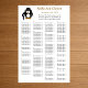 Esta "150 Gráfico de Casamento Engraçado de Penguin Greeter" é alfabética e irá ajustado 150 convidados. Seus convidados encontram seus lugares, e eles podem apreciar sua celebração especial.