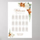 Ajude seus convidados a encontrar sua mesa com este assento de casamento floral de rosa e laranja queimada. É adequado para um casamento com 15 mesas e 150 convidados.