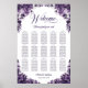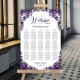 Ajude seus convidados a encontrar sua mesa com este gráfico de assentos florais roxo. É adequado para um casamento com 15 mesas e até 150 convidados.
