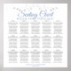 Torne sua recepção de casamento bonita com este assento. Projetado como parte do nosso Blue & Cinza Elegant Wedding Suite, ele apresenta um design simples, mas elegante, com texto azul claro e Cinza em um fundo branco com uma borda floral de folha falsa prateada. Este gráfico mostra as atribuições de mesa para que seus convidados tenham facilidade em encontrar a mesa certa.