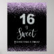 16 ESTÁ DOCE POR FAVOR PEGUE UM sinal TREAT que apresenta um belo design de confete roxo, preto e prateado. Perfeito para uma Doce festa de aniversário de 16.