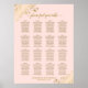 Esta bela tabela de assentos de casamento inclui atribuições de mesa para 160 convidados, com 10 pessoas em cada mesa. O design é simples, mas elegante, com texto dourado sobre fundo cor-de-rosa claro e cor-de-rosa claro, e apresenta um filigre de folha de papel dourado herdado nos cantos com a caligrafia de rico com a leitura "encontre sua mesa". Sofisticado e chique.