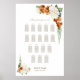 Ajude seus convidados a encontrar sua mesa com este assento de casamento floral de rosa e laranja queimada. É adequado para um casamento com 17 mesas e 170 convidados.