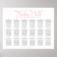 Torne sua recepção de casamento bonita com este assento. Ele apresenta um design simples, mas elegante, com texto cor-de-rosa e Cinza sobre fundo branco com borda floral de folha fina prateada. Este gráfico mostra atribuições de mesa para 180 pessoas com 10 lugares por mesa, de modo que seus convidados terão facilidade em encontrar a mesa certa.