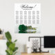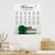 Aumente a elegância, o romantismo e o talento de sua celebração de casamento com este assento de 18 mesas, que acomoda até 180 convidados, cada mesa tendo 10 assentos. A design apresenta um motif floral contemporâneo e atordoante que inclui um rosa solitário, de longo curso, numa matiz verde esmeralda rica, colocada horizontalmente e refletindo numa piscina de água. O título está escrito em uma caligrafia elegante e diz: "Bem-vindo! Por favor, encontre seu lugar", com os nomes dos recém-casados e a data do casamento no fundo. Este quadro oferece uma excelente oportunidade para acolher calorosamente os seus convidados e ajudá-los a localizar os respectivos assentos com facilidade.