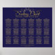 Este lindo gráfico de assentos de casamento é simples, sofisticado e chique. Com a inscrição dourada e uma vintagem falsa de folha florescem sobre um fundo azul marinho, ele tem funções de assento para 18 fazeres mesas. É fácil para seus convidados encontrar suas mesas na sua recepção.