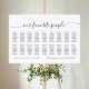 Gráfico de Casamento Minimalista Nossas pessoas favoritas para 150-180 convidados (8-10 pessoas em uma mesa). Um design elegante em preto e branco ou qualquer cor de fundo que você escolher. Basta clicar no link personalizar mais, mostrado na área de personalização de texto à direita, e escolher seu fundo de cor personalizado. Este poster de placa torna rápido e fácil criar acréscimos incríveis à decoração do casamento. Os sinais podem ser diminuídos, há muitos tamanhos a serem escolhidos, assim como opções de enquadramento e correspondência personalizados.