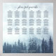 Este gráfico de assentos de casamento rústico, mas elegante, tem atribuições de mesa para 180 convidados em 18 mesas (10 pessoas por mesa). A design apresenta uma cena de montanha com uma encosta neblina coberta por uma floresta azul de pinheiros ou pinheiros. Há um título de caligrafia de escrita antiga lendo "por favor encontre sua mesa" assim como espaço para os nomes do casal e a data do casamento. Perfeito para um casamento ao ar livre ou selvagem.