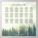 Este gráfico de assentos de casamento rústico, mas elegante, tem atribuições de mesa para 180 convidados em 18 mesas (10 pessoas por mesa). A design apresenta uma cena de montanha com encosta nebulosa coberta por uma floresta de pinheiros verdes. Há um título de caligrafia de escrita antiga lendo "por favor encontre sua mesa" assim como espaço para os nomes do casal e a data do casamento. Perfeito para um casamento ao ar livre ou selvagem.