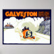 C. 1920, poster vintage que promove Galveston Texas " Trinta milhas Beach Drive and Sea Wall ". O poster com um carro de corrida a barrar ao longo da costa.
