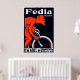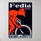 Anúncio de 1920 para pneus de bicicleta Fedia, mostrando o Diabo andando de bicicleta.