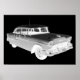 Arte automotiva antiga Chevrolet Bel Air 1955, preto e branco.