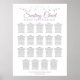 Torne sua recepção de casamento bonita com este assento. Ele apresenta um design simples, mas elegante, com texto lavanda roxo e cinza sobre fundo branco com borda floral de folha de papel prateada. Este gráfico mostra as atribuições de mesa para que seus convidados tenham facilidade em encontrar a mesa certa.